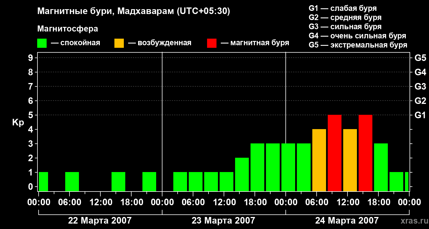Магнитные бури в Мадхавараме — 24 марта 2007 года