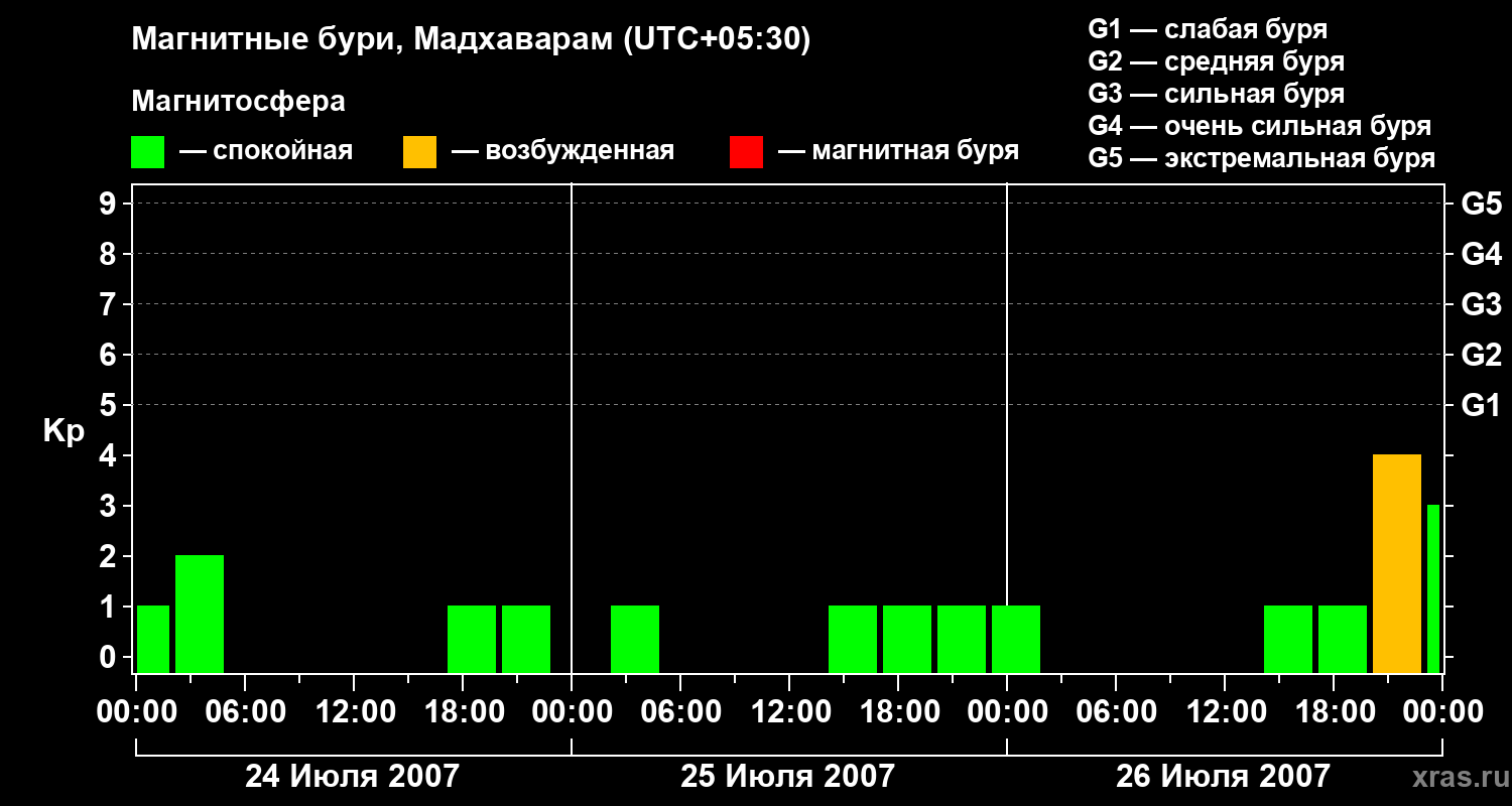 Магнитные бури в Мадхавараме 26 июля 2007 года