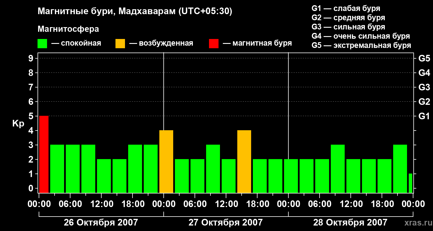 Магнитные бури в Мадхавараме 28 октября 2007 года