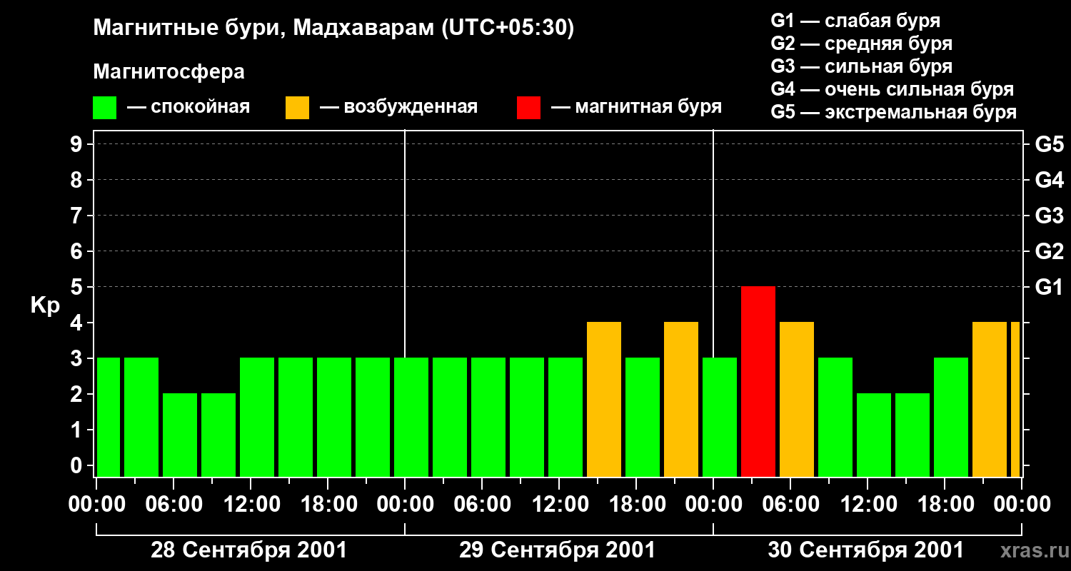 Магнитные бури в Мадхавараме 30 сентября 2001 года