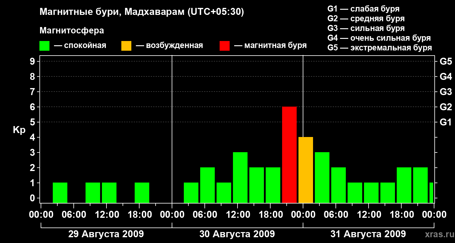 Магнитные бури в Мадхавараме — 31 августа 2009 года