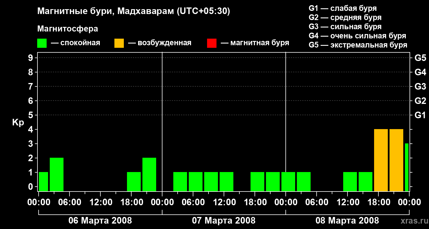 Магнитные бури в Мадхавараме — 8 марта 2008 года