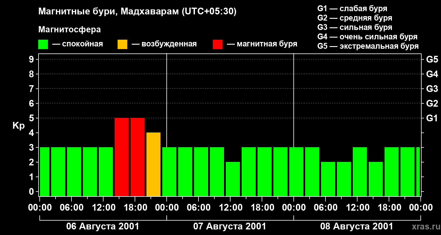 Магнитные бури в Мадхавараме 8 августа 2001 года