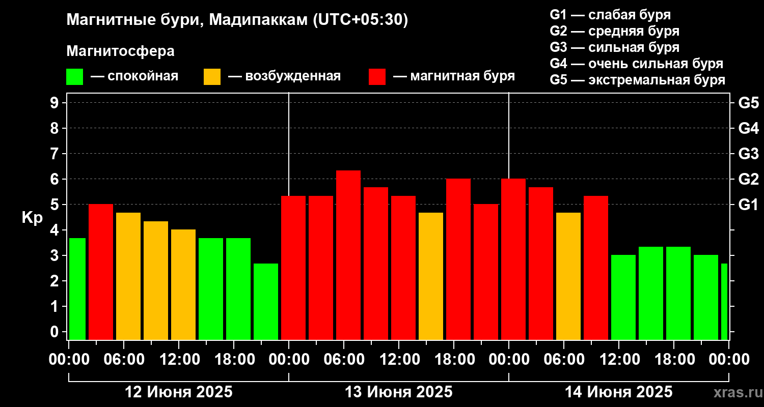 Магнитные бури в Мадипаккаме — 14 июня 2025 года