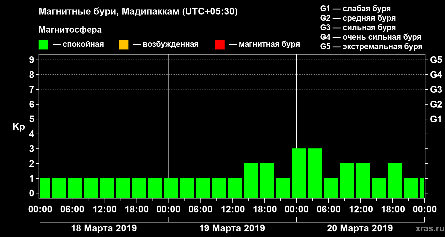 Магнитные бури в Мадипаккаме — 20 марта 2019 года