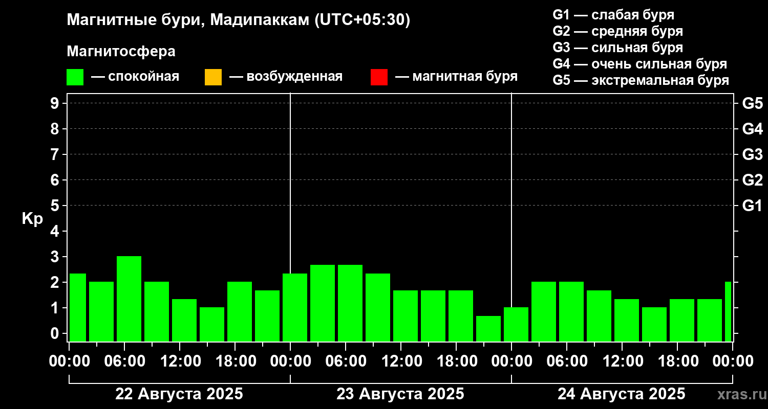 Магнитные бури в Мадипаккаме — 24 августа 2025 года