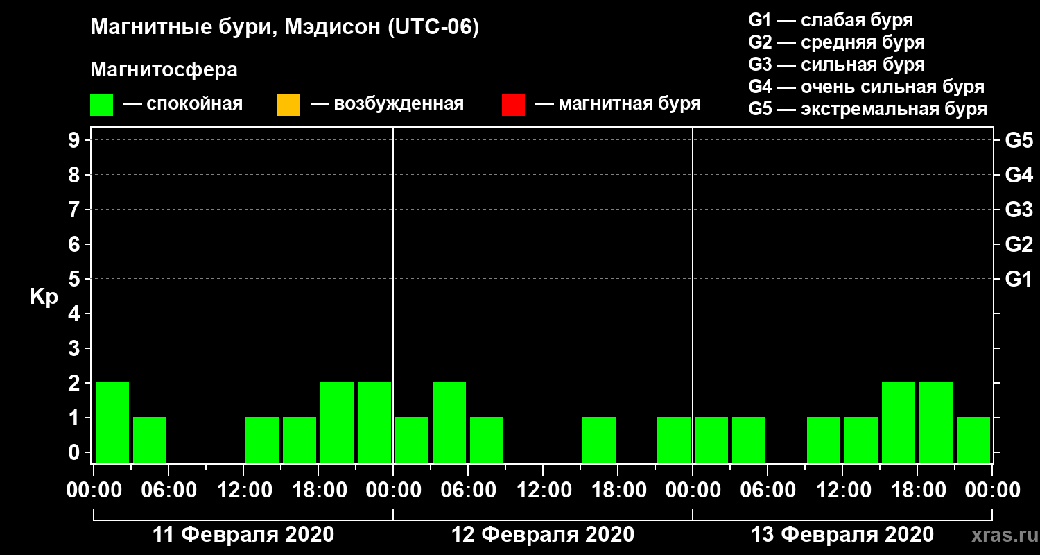 Магнитные бури в Мэдисоне 13 февраля 2020 года