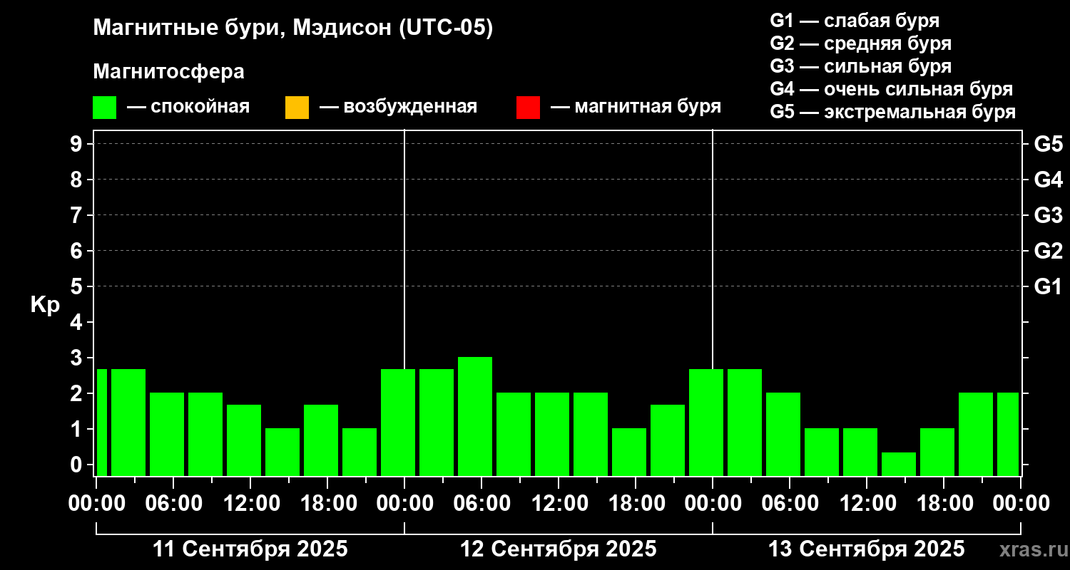Магнитные бури в Мэдисоне 13 сентября 2025 года