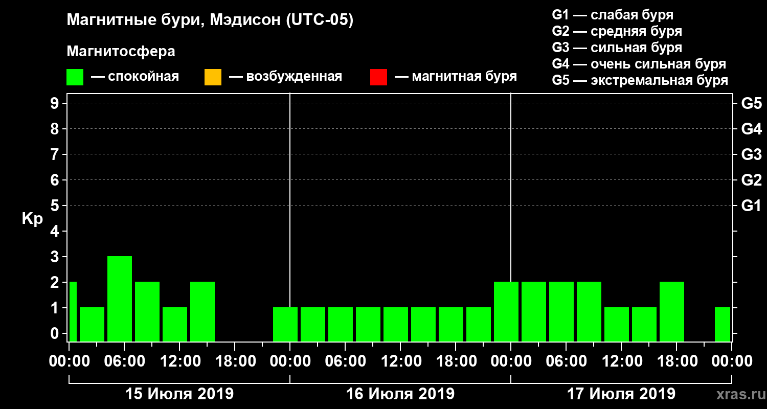 Магнитные бури в Мэдисоне 17 июля 2019 года