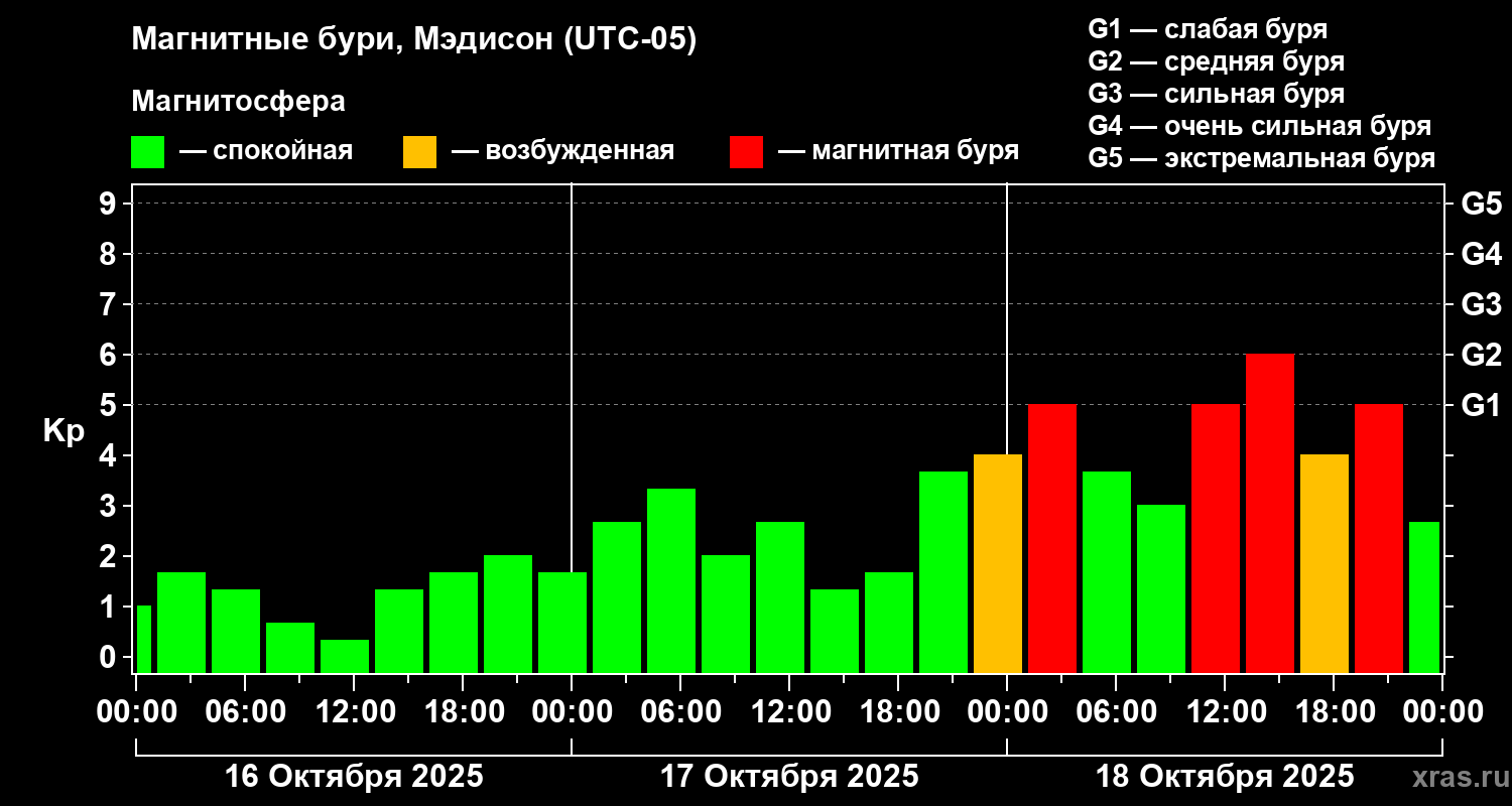 Магнитные бури в Мэдисоне 18 октября 2025 года