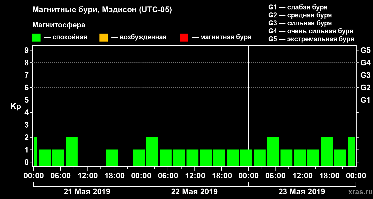 Магнитные бури в Мэдисоне 23 мая 2019 года