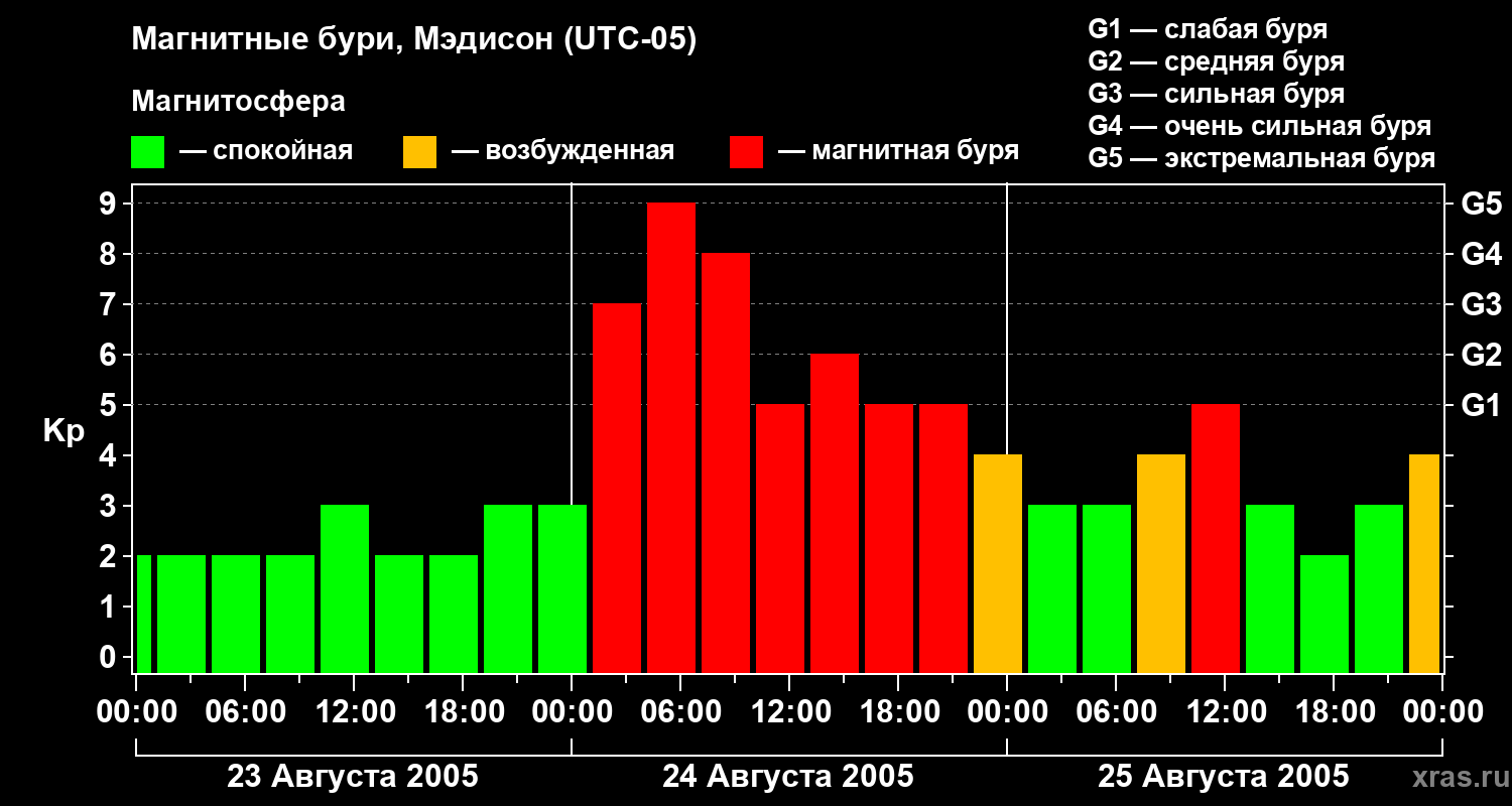Магнитные бури в Мэдисоне 25 августа 2005 года