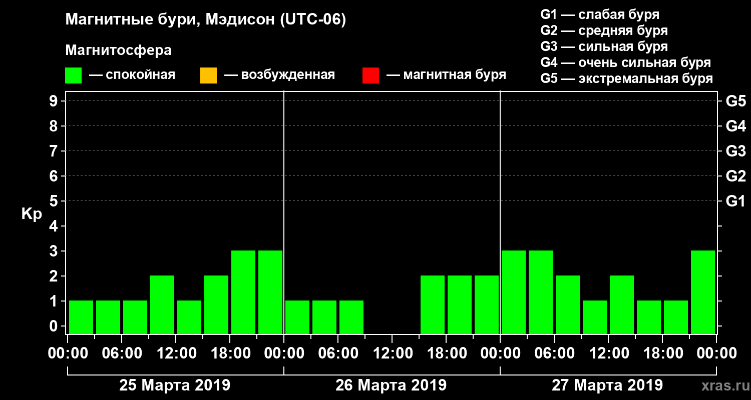 Магнитные бури в Мэдисоне 27 марта 2019 года