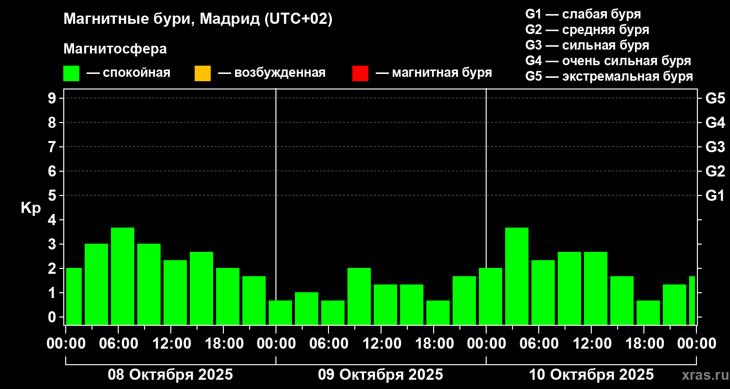 Магнитные бури в Мадриде — 10 октября 2025 года