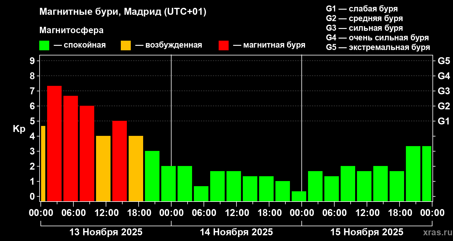 Магнитные бури в Мадриде 15 ноября 2025 года