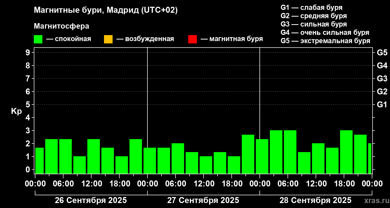 Магнитные бури в Мадриде 28 сентября 2025 года