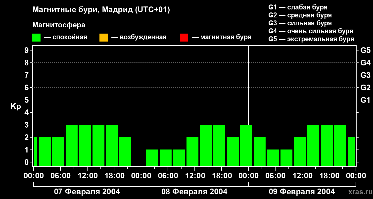 Магнитные бури в Мадриде 9 февраля 2004 года