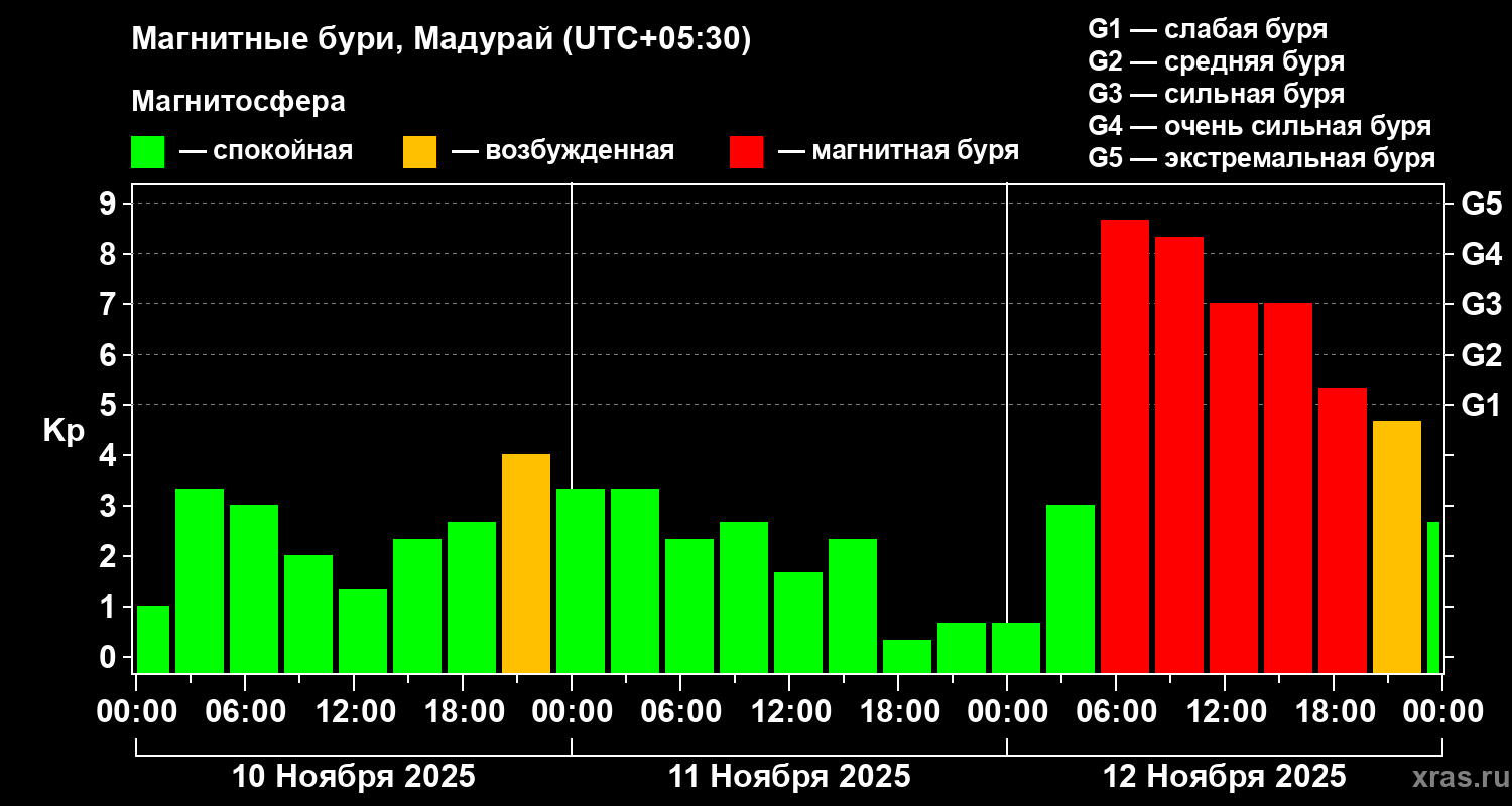 Магнитные бури в Мадурайе — 12 ноября 2025 года