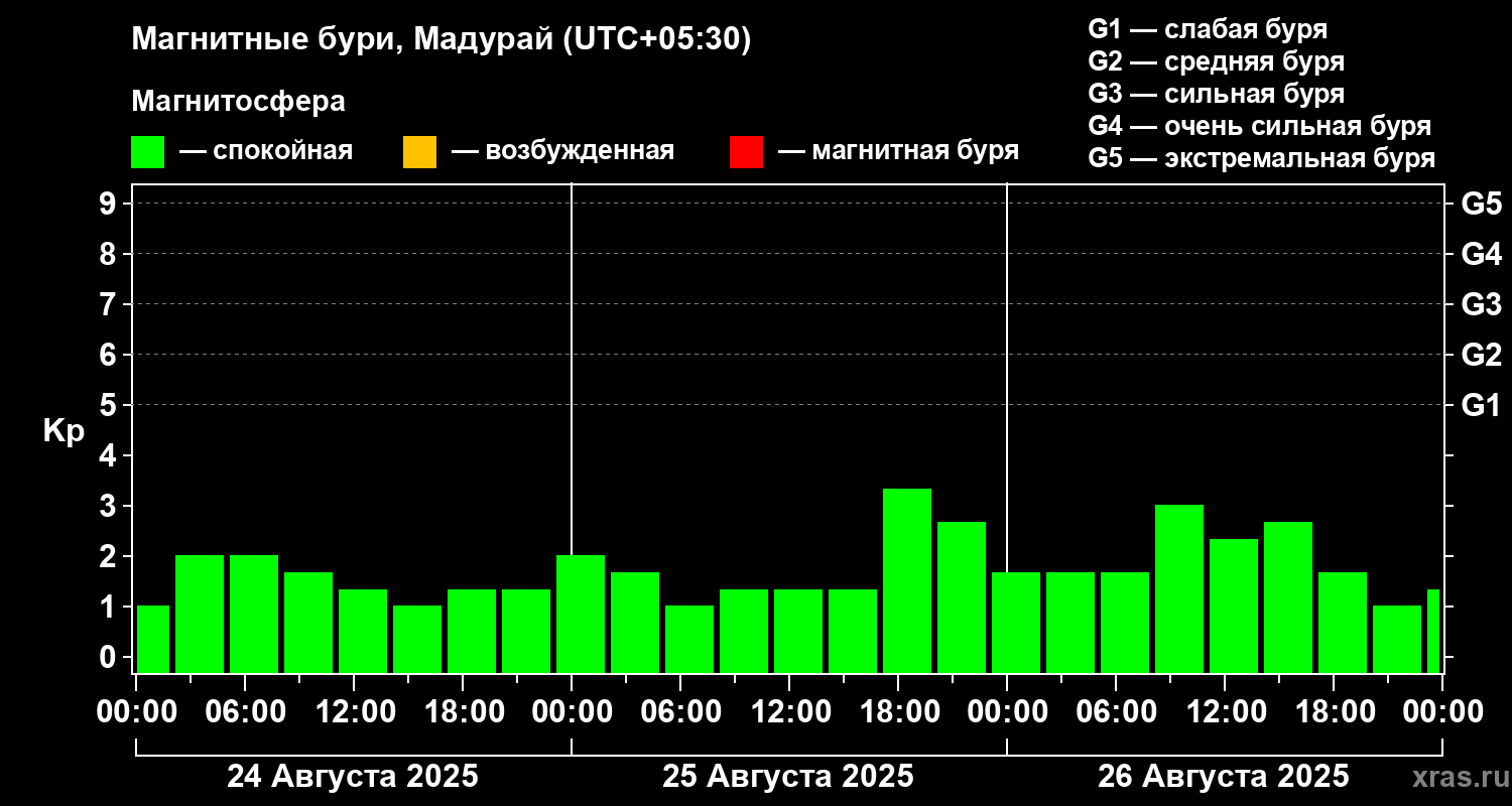 Магнитные бури в Мадурайе 26 августа 2025 года