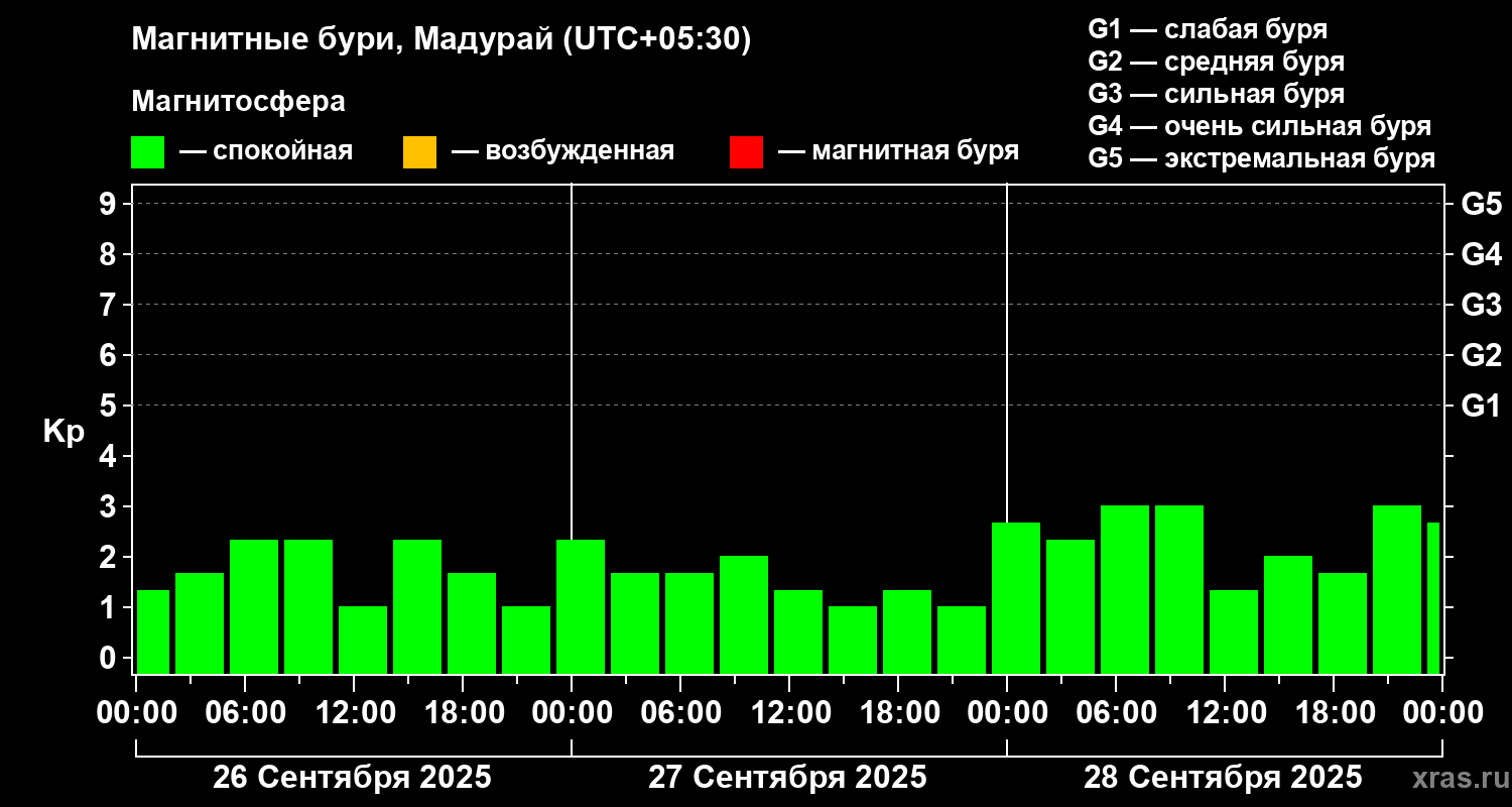 Магнитные бури в Мадурайе 28 сентября 2025 года
