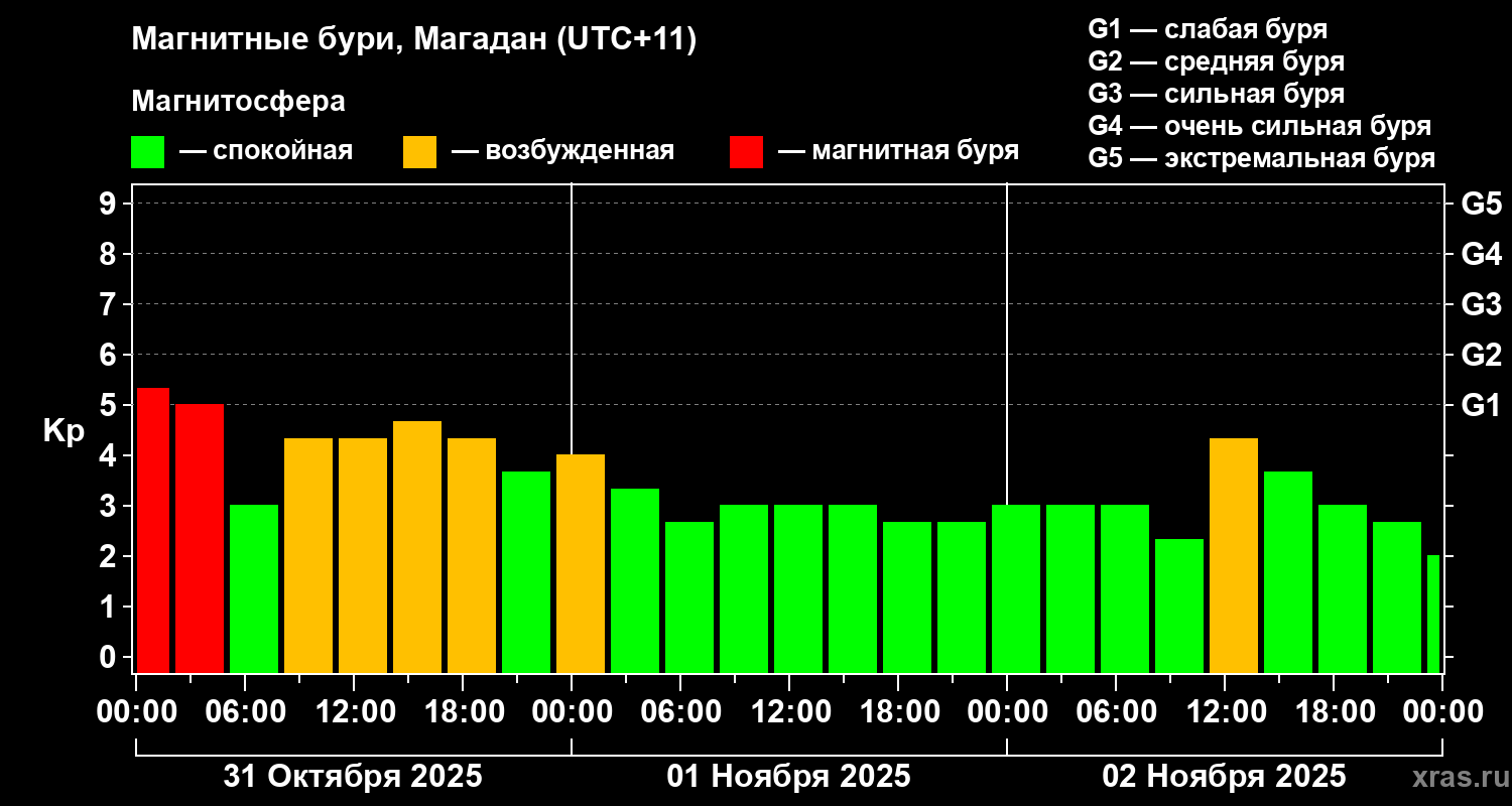 Магнитные бури в Магадане — 2 ноября 2025 года