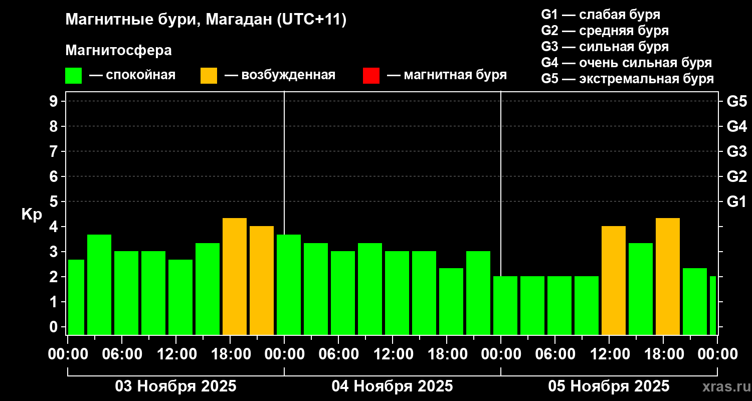 Магнитные бури в Магадане — 5 ноября 2025 года