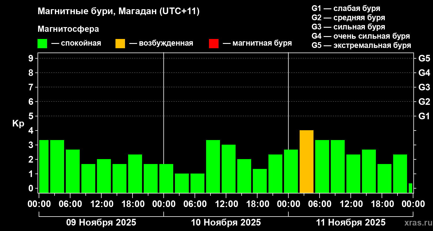 Магнитные бури в Магадане — 11 ноября 2025 года