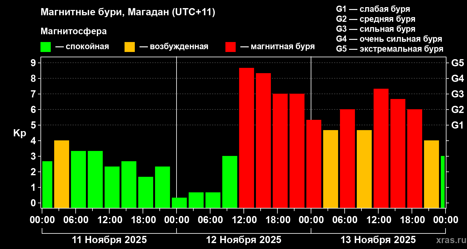 Магнитные бури в Магадане — 13 ноября 2025 года