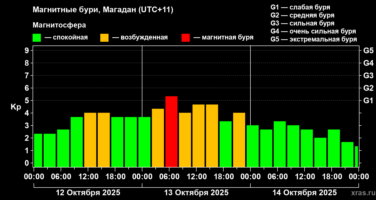Магнитные бури в Магадане 14 октября 2025 года
