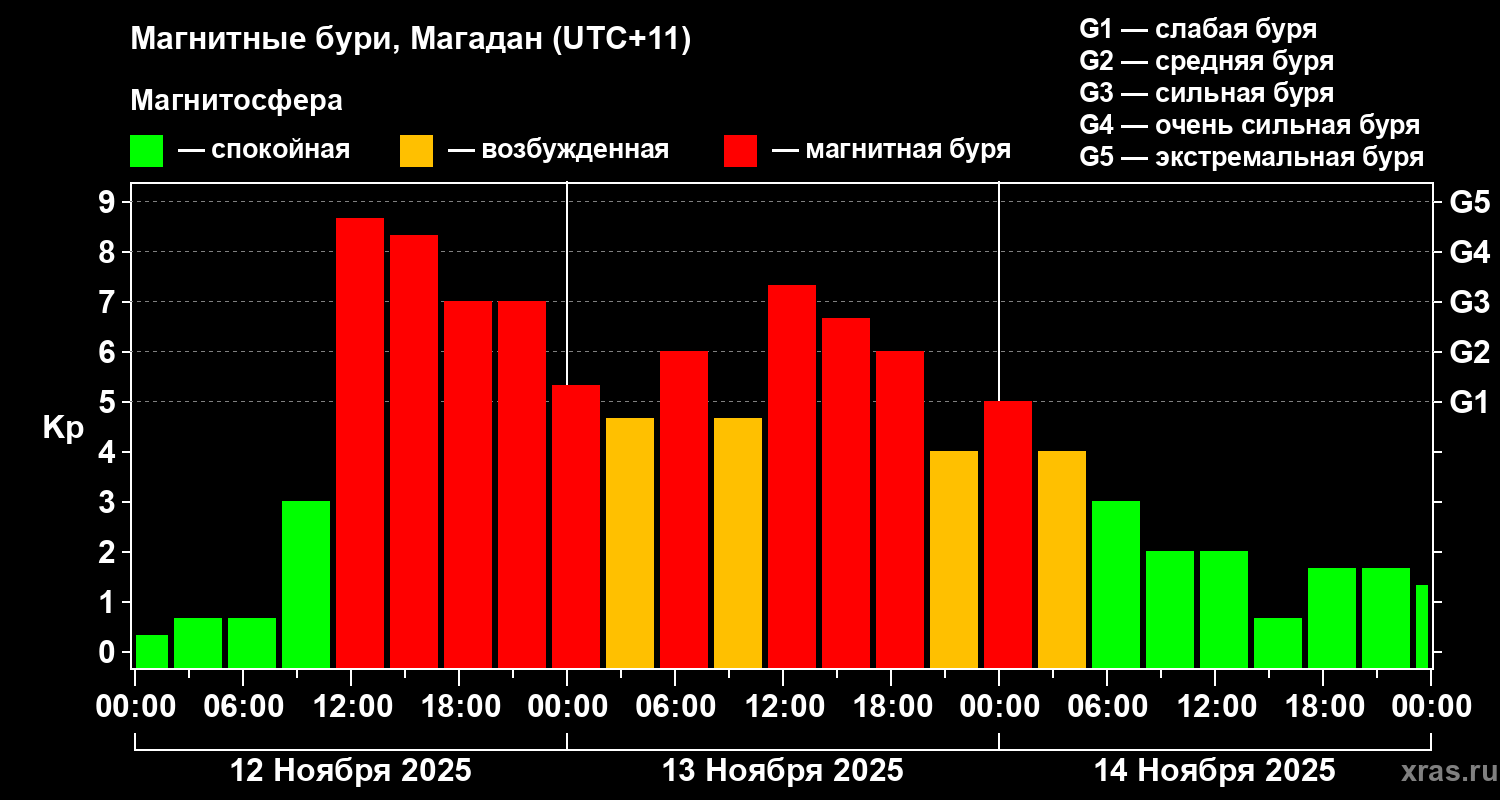 Магнитные бури в Магадане — 14 ноября 2025 года