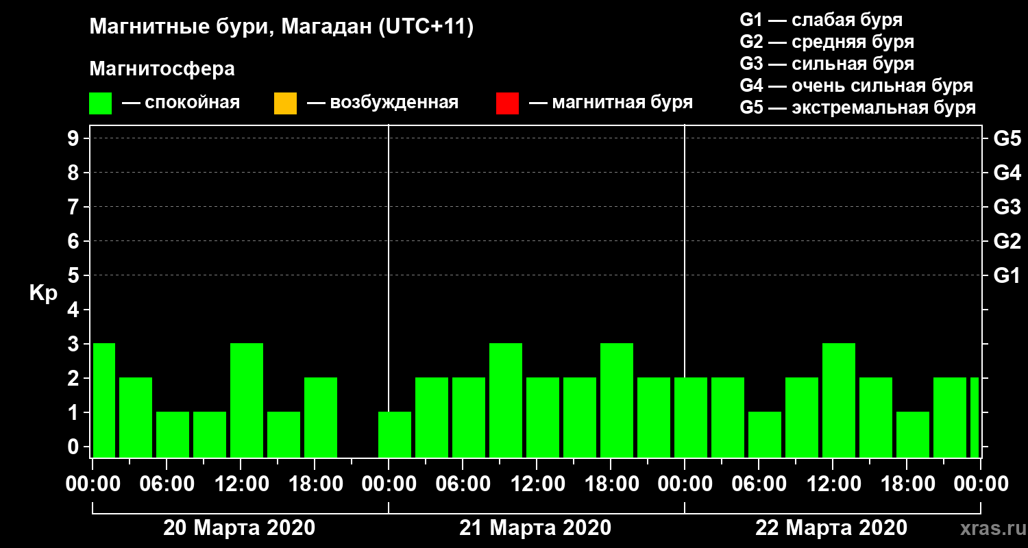 Магнитные бури в Магадане — 22 марта 2020 года