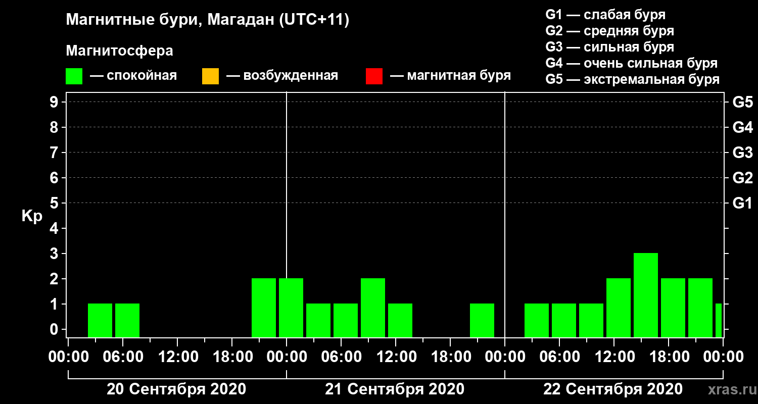Магнитные бури в Магадане 22 сентября 2020 года