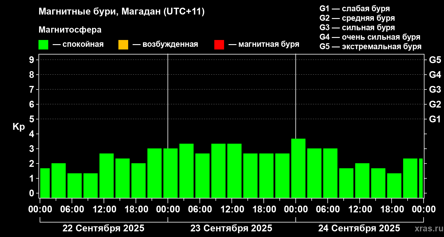 Магнитные бури в Магадане — 24 сентября 2025 года