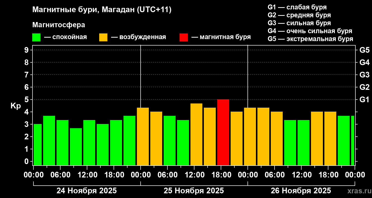 Магнитные бури в Магадане — 26 ноября 2025 года