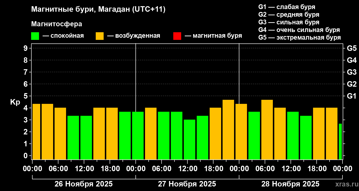 Магнитные бури в Магадане — 28 ноября 2025 года