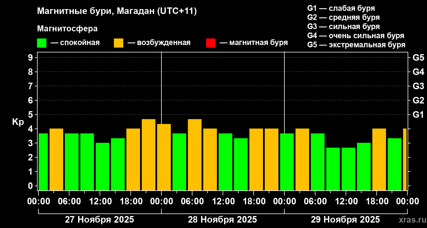 Магнитные бури в Магадане — 29 ноября 2025 года