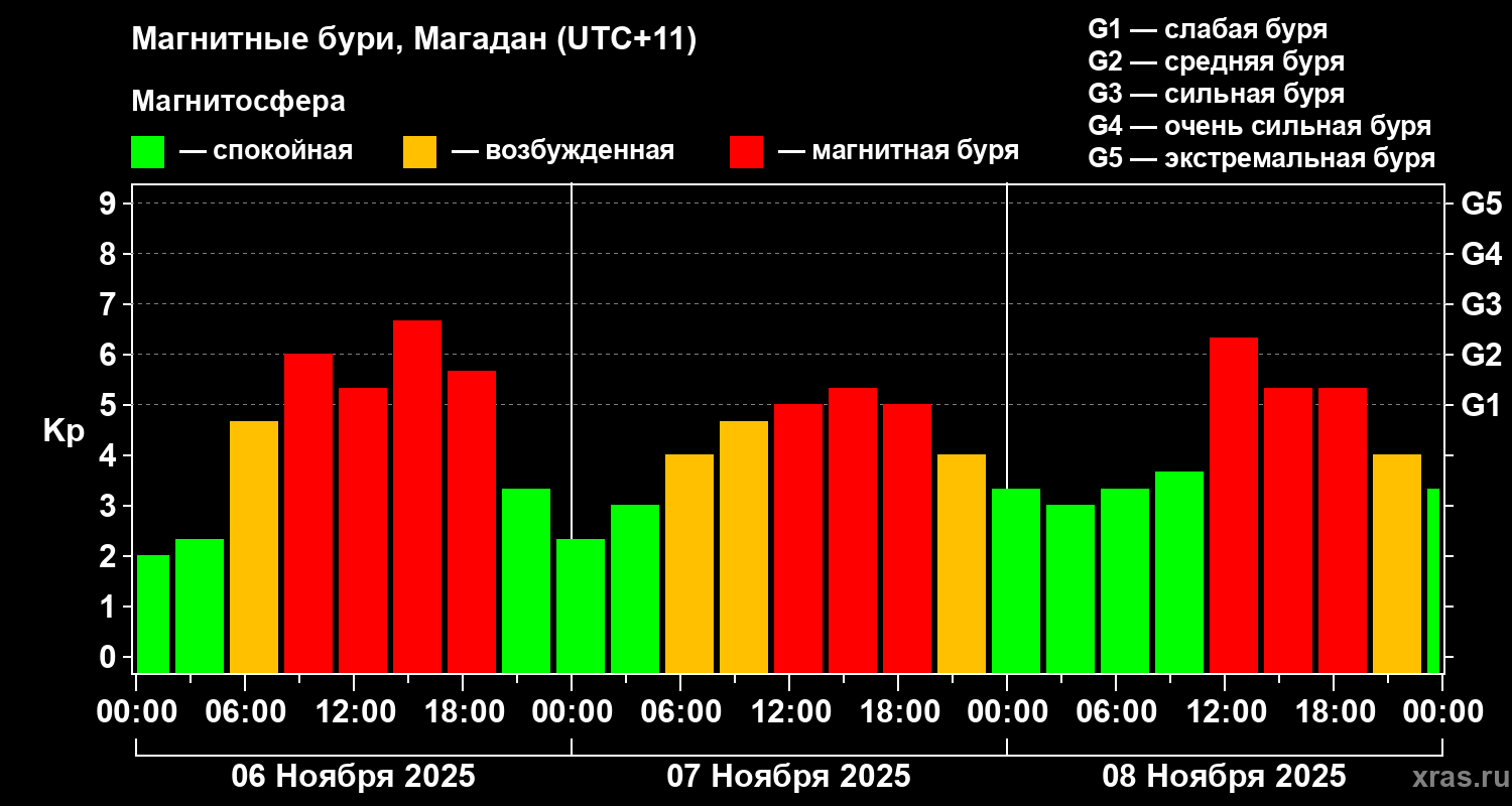 Магнитные бури в Магадане 8 ноября 2025 года