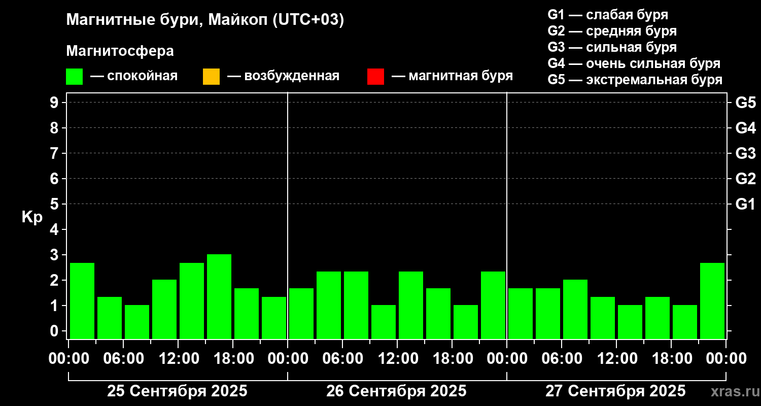 Магнитные бури в Майкопе 27 сентября 2025 года