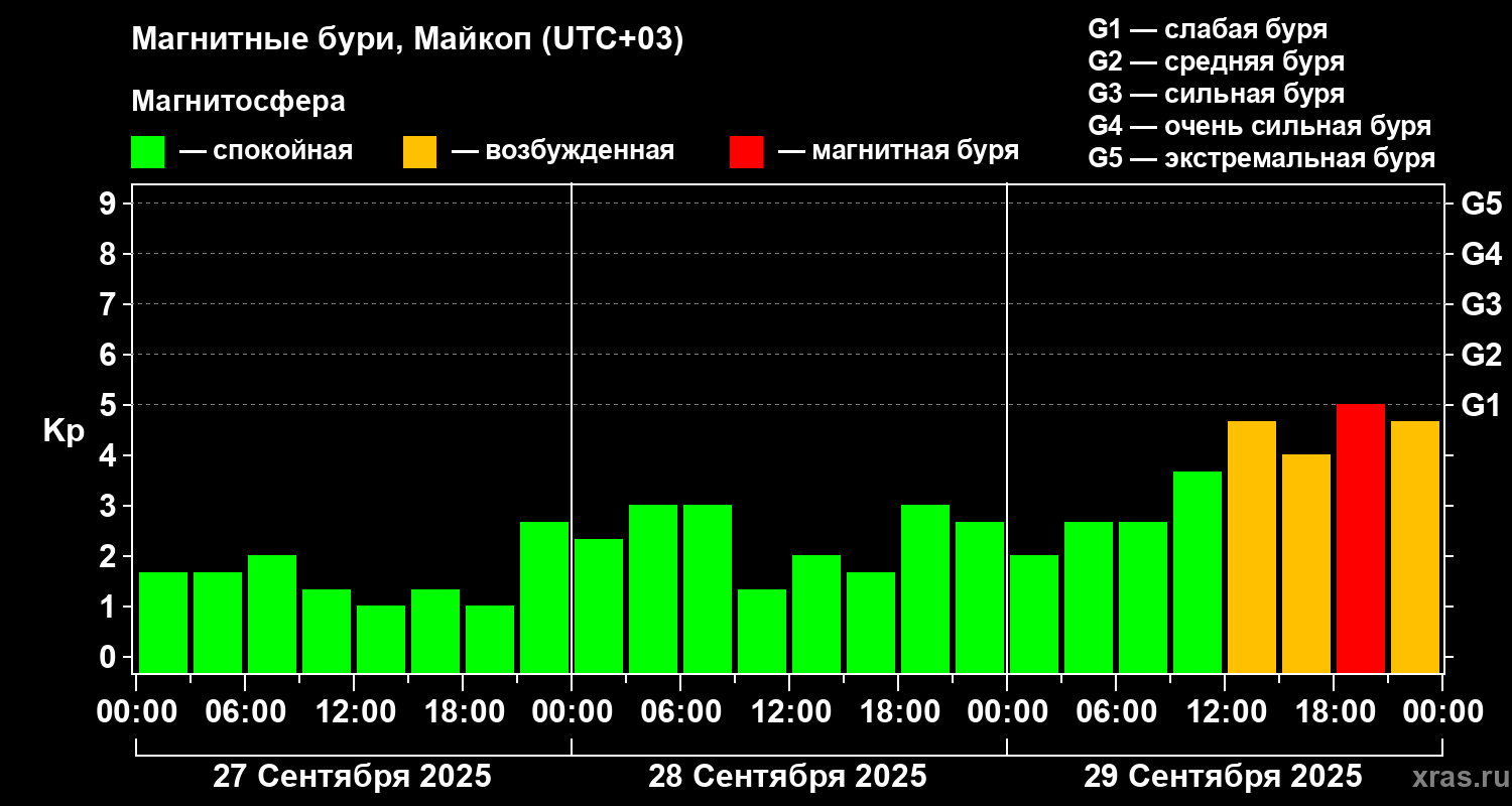 Магнитные бури в Майкопе — 29 сентября 2025 года