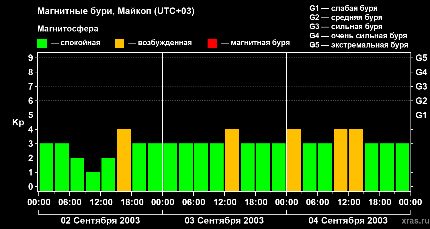 Магнитные бури в Майкопе — 4 сентября 2003 года