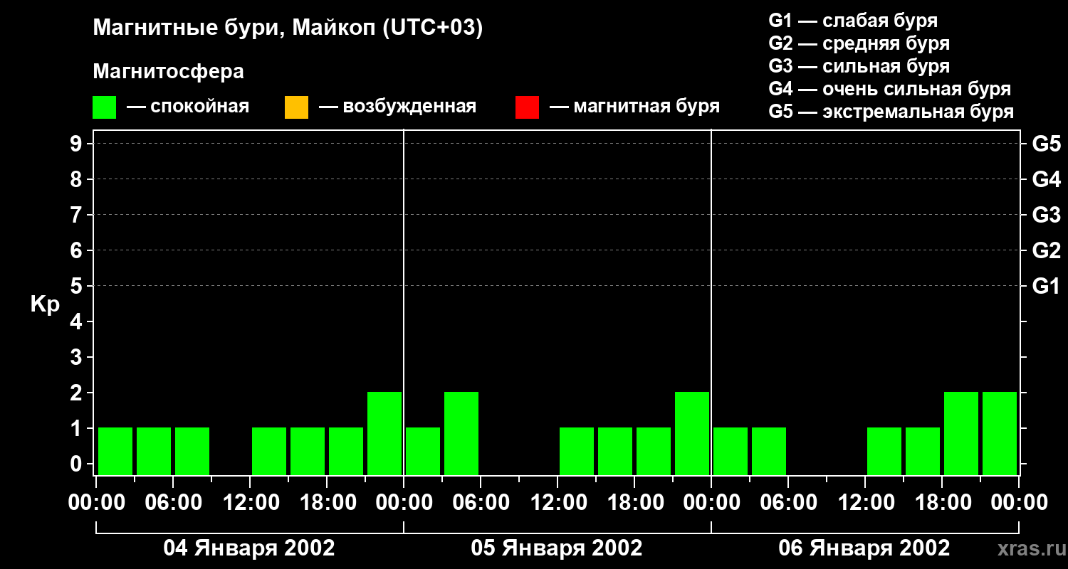 магнитосфера Земли была спокойной (Kp = 2.00)