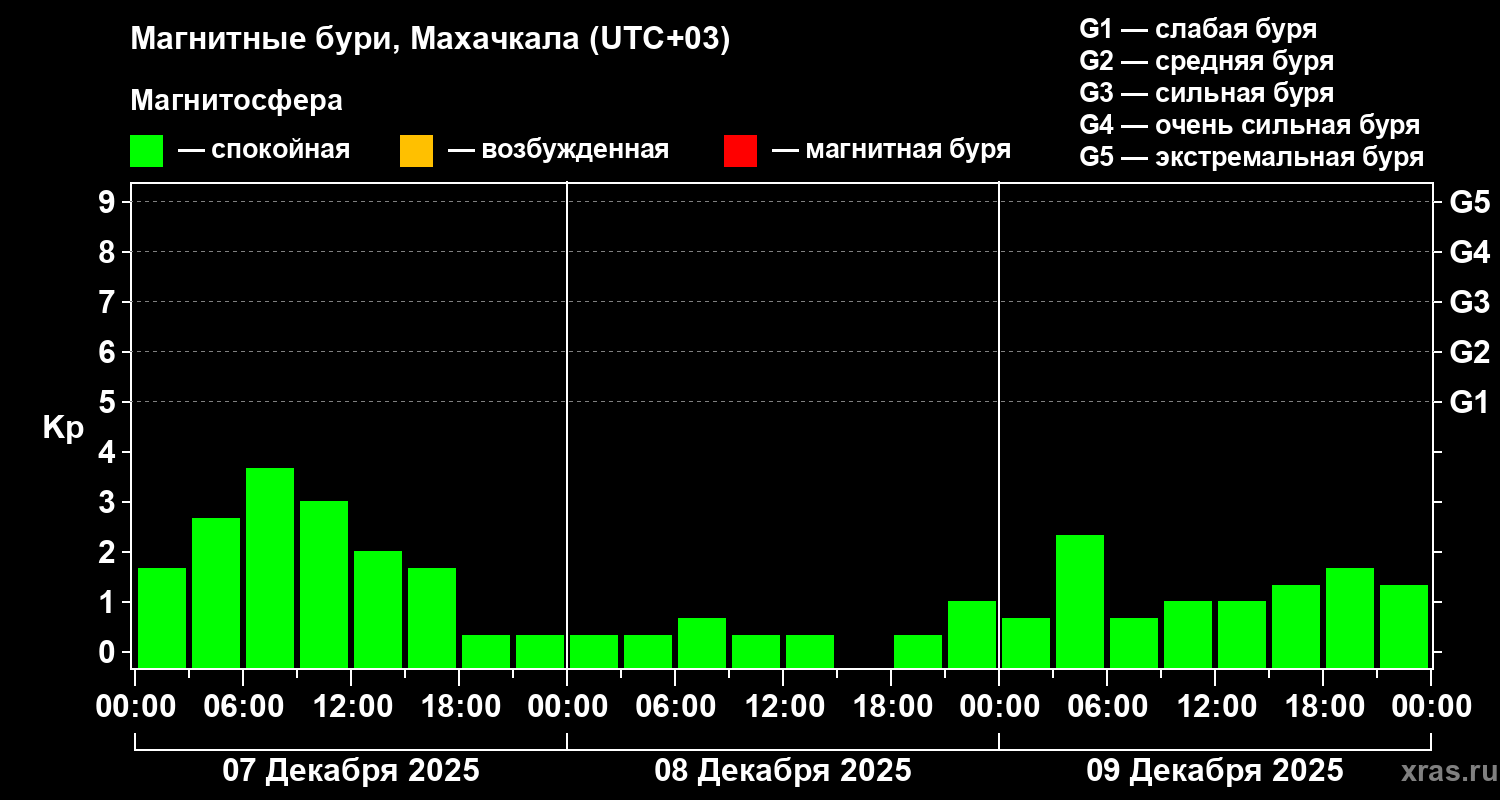 Магнитные бури в Махачкале 9 декабря 2025 года