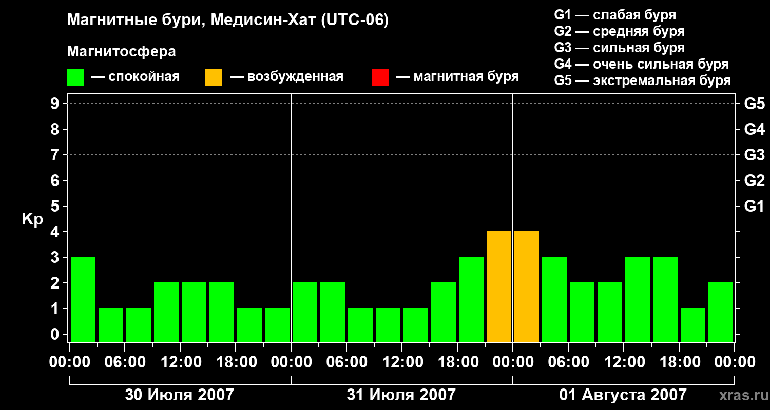 Магнитные бури в Медисин-Хате — 1 августа 2007 года