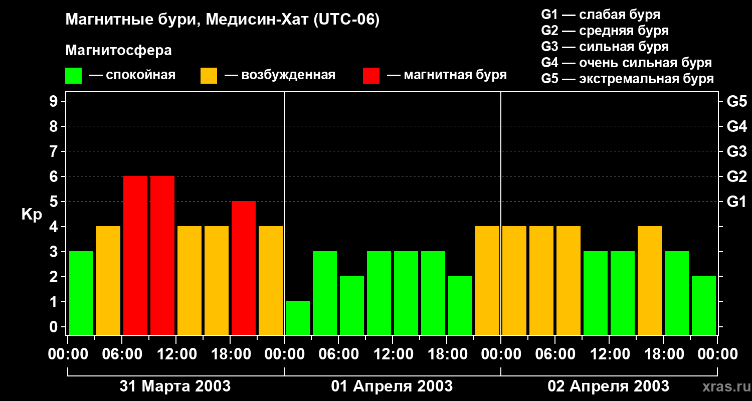Магнитные бури в Медисин-Хате — 2 апреля 2003 года