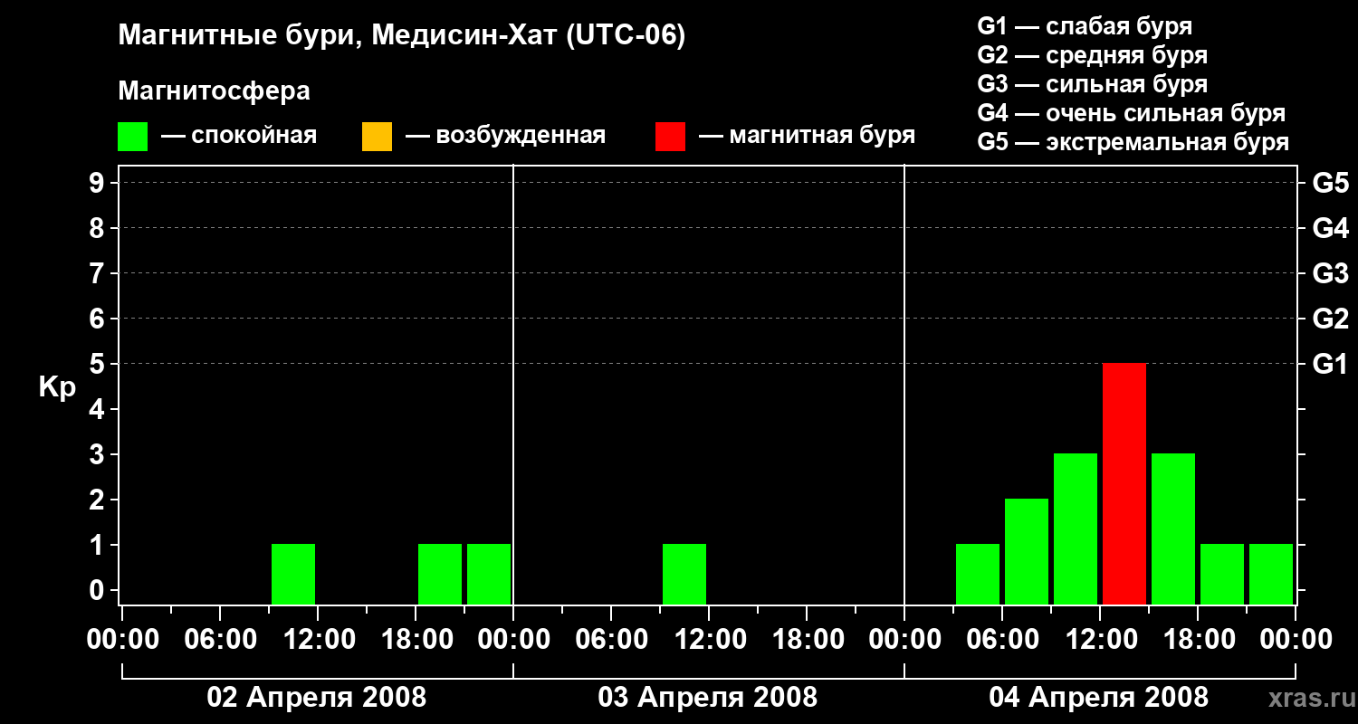 Магнитные бури в Медисин-Хате — 4 апреля 2008 года
