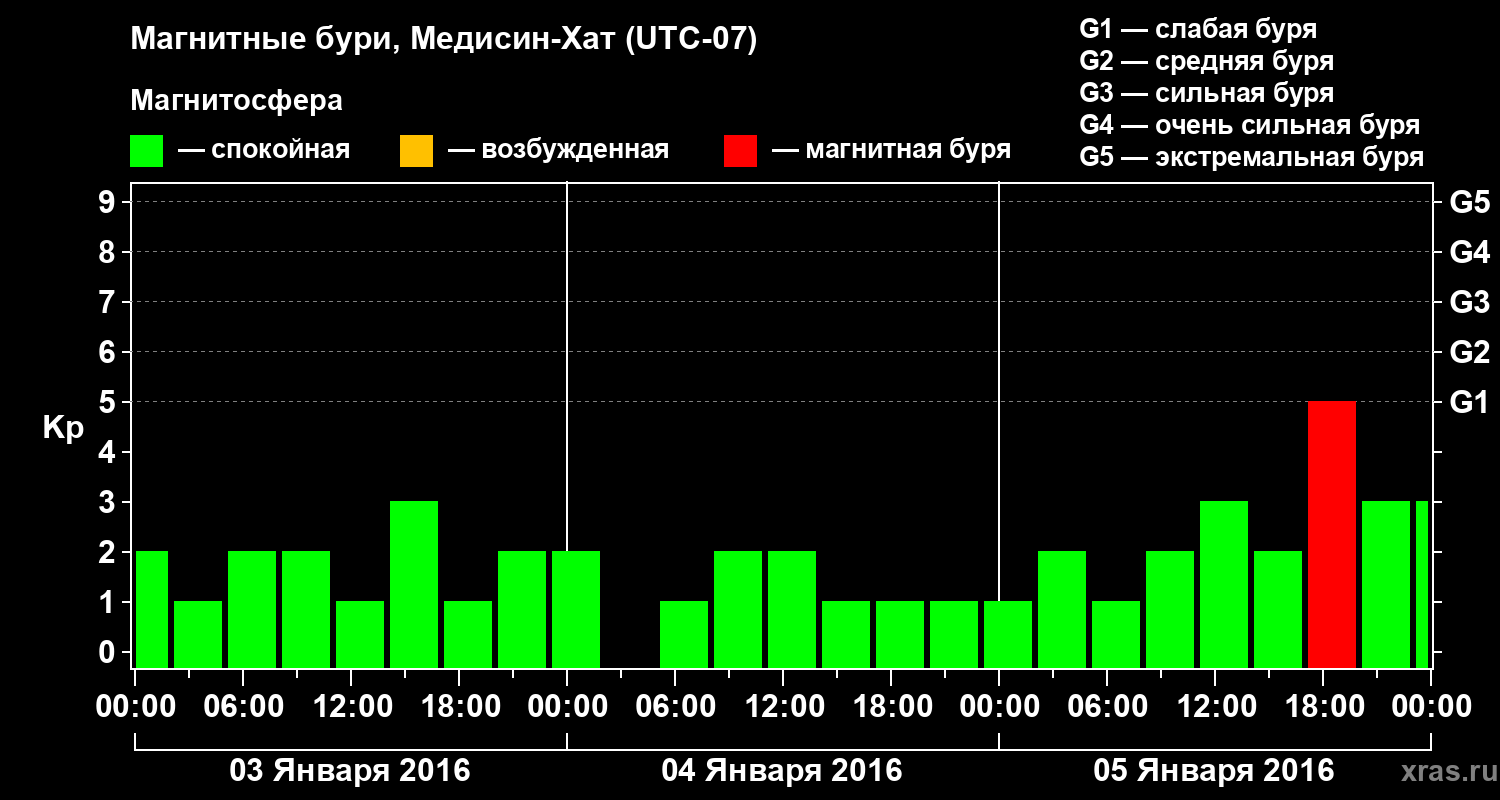 Магнитные бури в Медисин-Хате 5 января 2016 года