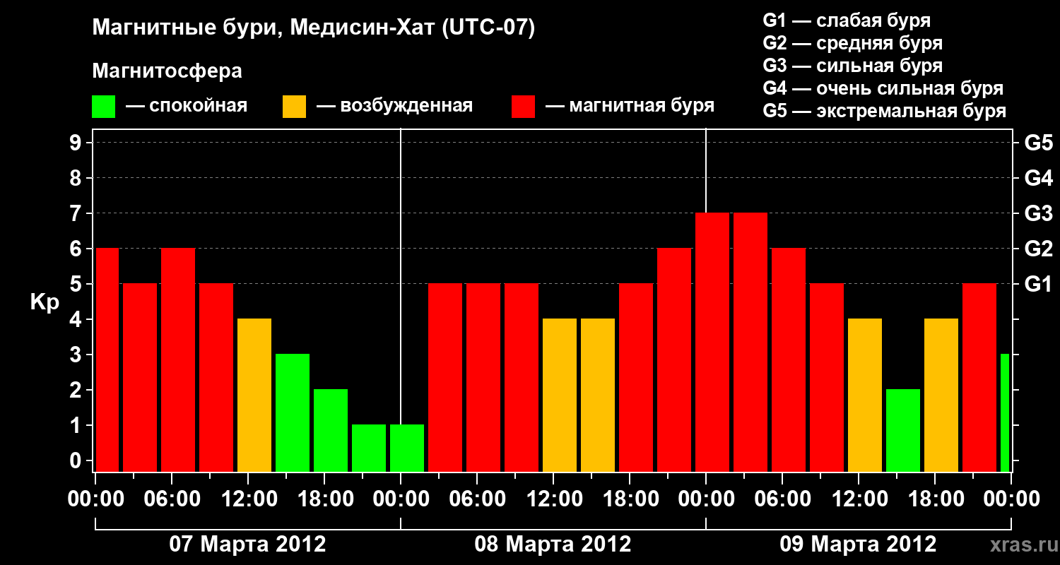 Магнитные бури в Медисин-Хате — 9 марта 2012 года