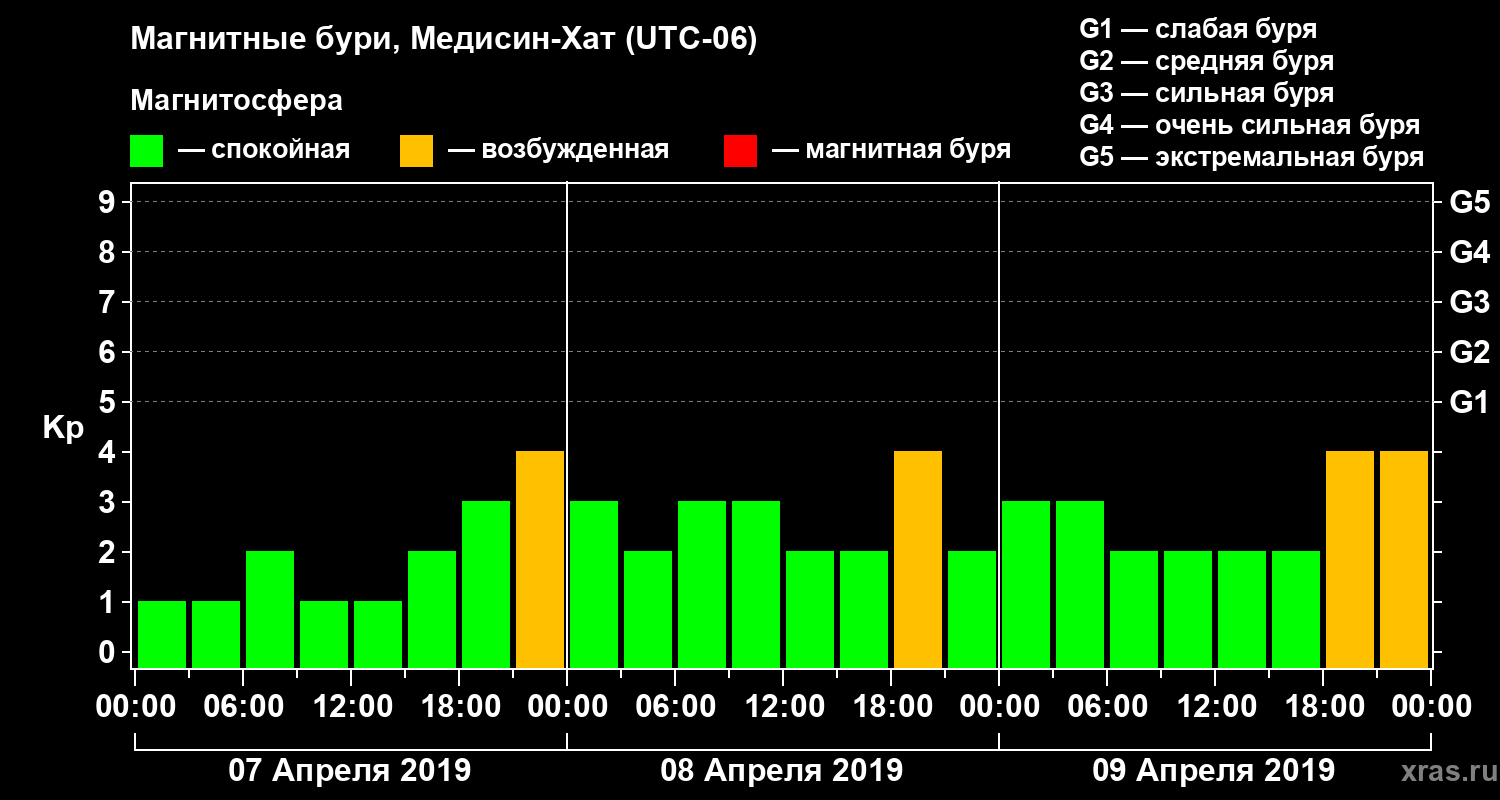 Магнитные бури в Медисин-Хате — 9 апреля 2019 года
