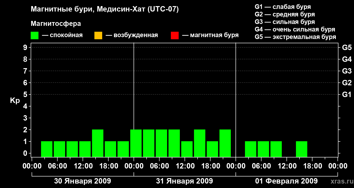 Магнитные бури в Медисин-Хате 1 февраля 2009 года