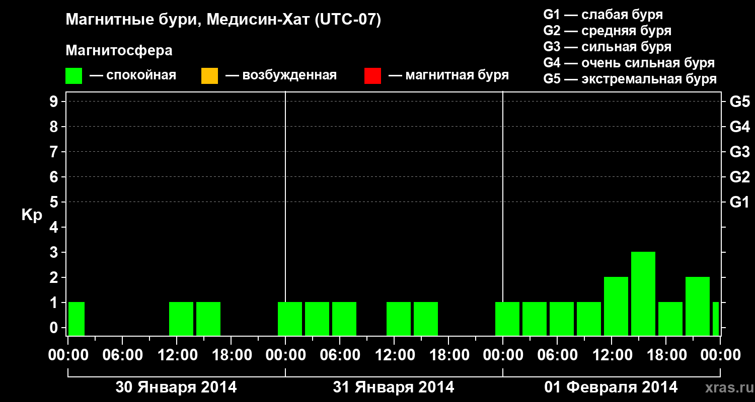 Магнитные бури в Медисин-Хате — 1 февраля 2014 года